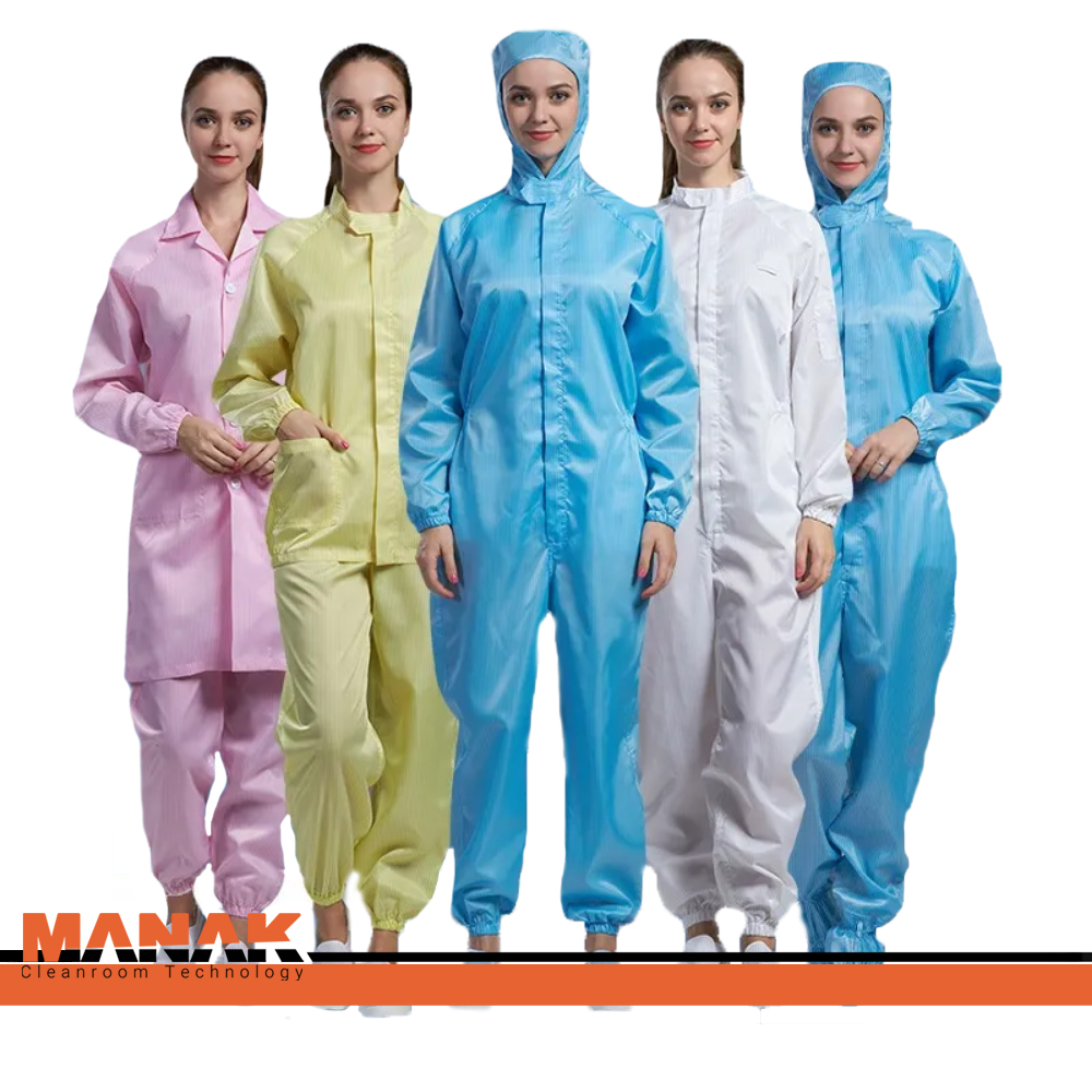 لباس آنتی استاتیک اتاق تمیز به عنوان پوششی در برابر انتشار ذرات در اتاق تمیز استفاده شده و از کارمندان در برابر خطرات احتمالی محافظت میکند