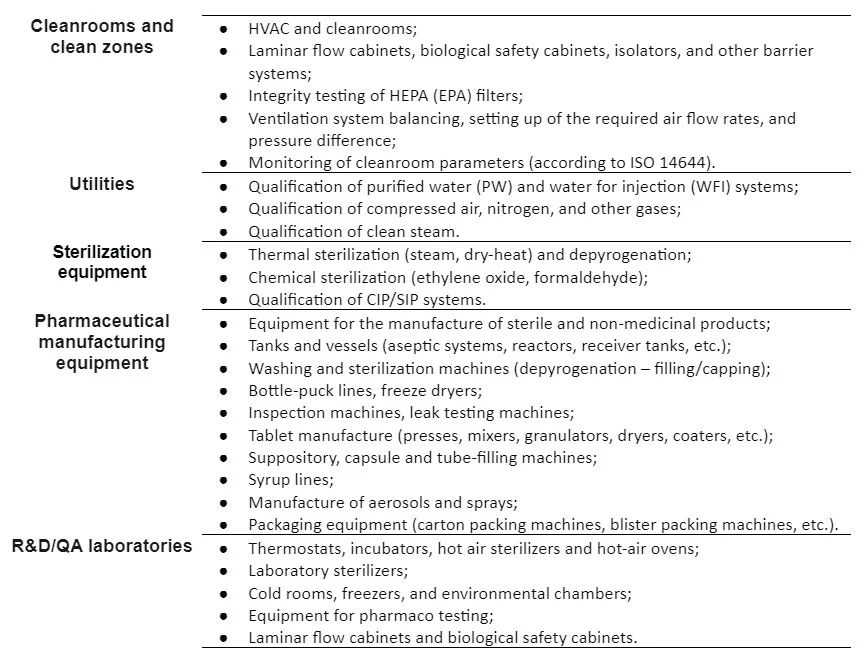 شرکت ما طیف کاملی از خدمات را ارائه می دهد: تهیه مشخصات مورد نیاز کاربر (URS) برای تجهیزاتی که باید خریداری شود، احراز کیفیت تجهیزات، انجام مراحل PQ/PV (احراز کیفیت عملکرد / معتبر سازی فرآیند).